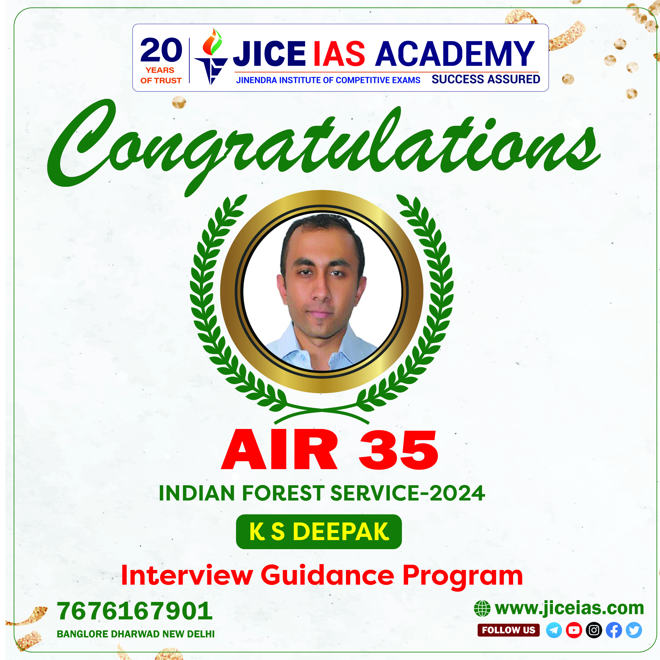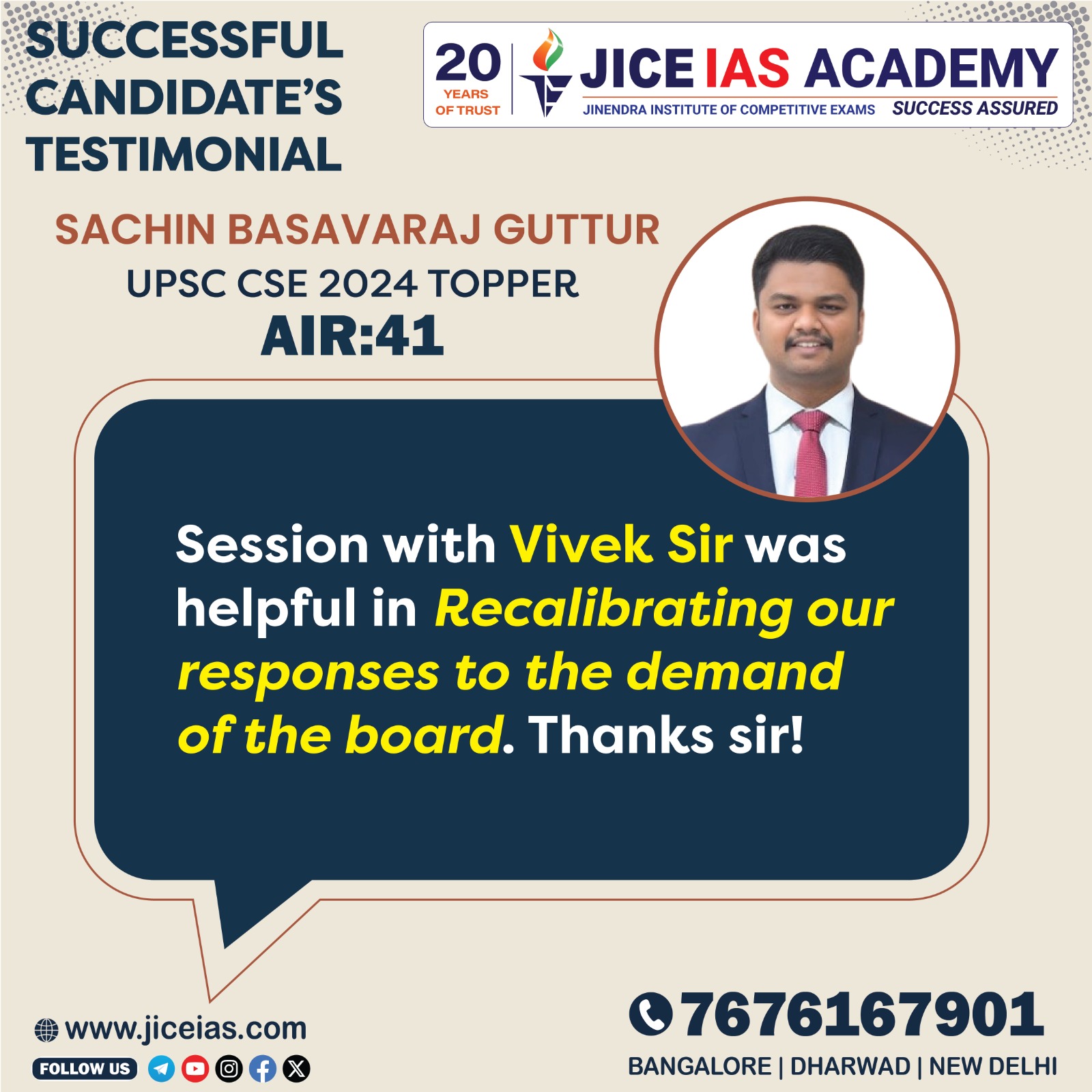 JICE academy was very helpful during my preparation for civil service exam, Especially Mr Akil sir who is very humble and helpful. I extend my special thanks to Sri Venkatappa sir for his invaluable guidance and ever encouraging support. I wish all the SUCCESS to JICE academy