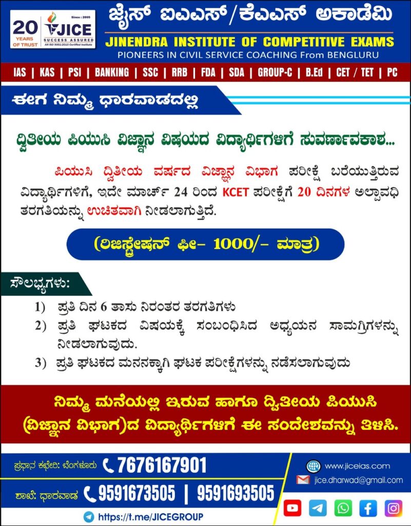 Golden Opportunity for 2nd PUC Science Students in Dharwad and Bengaluru