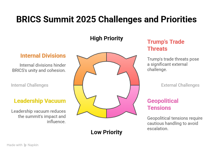 - The BRICS 2025 Summit in Brazil, though significant in terms of timing and global context, has opted for a cautious and technical approach.