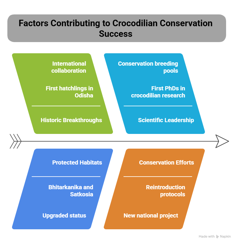 - Odisha was also the first State to release captive-reared crocodiles back into the wild—setting standards for reintroduction protocols.