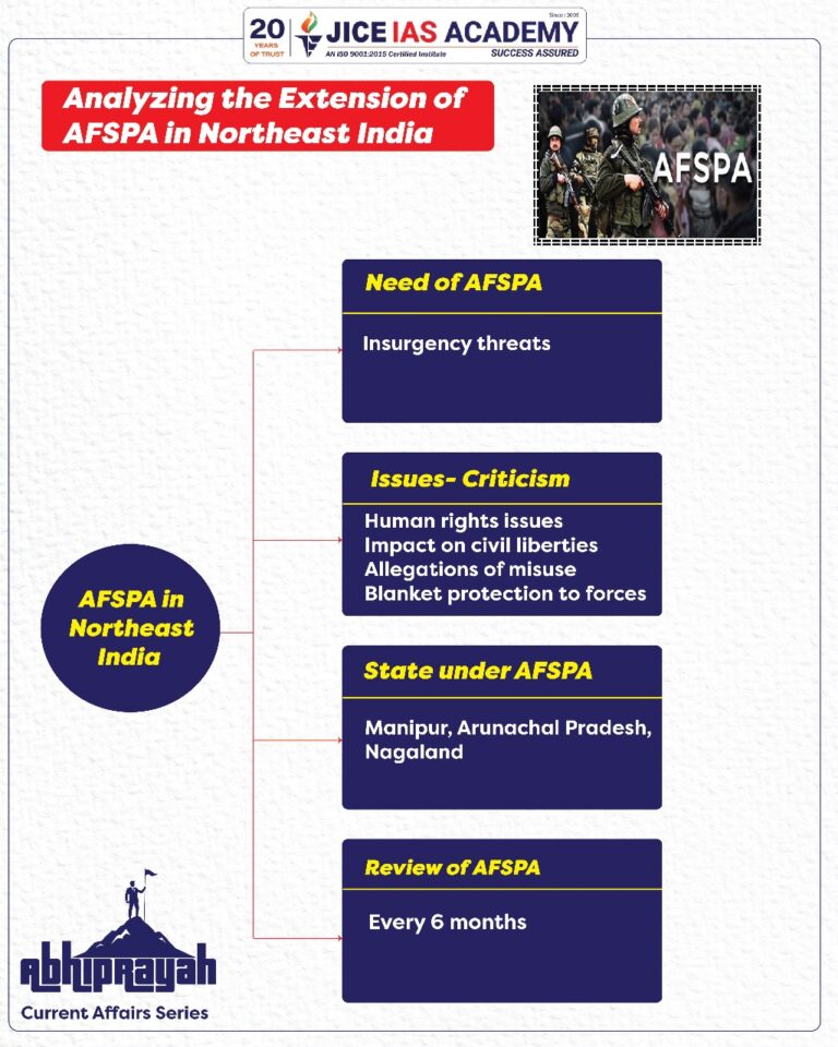 - The extension of AFSPA in parts of Manipur, Nagaland, and Arunachal Pradesh underscores the continuing security challenges in the region.