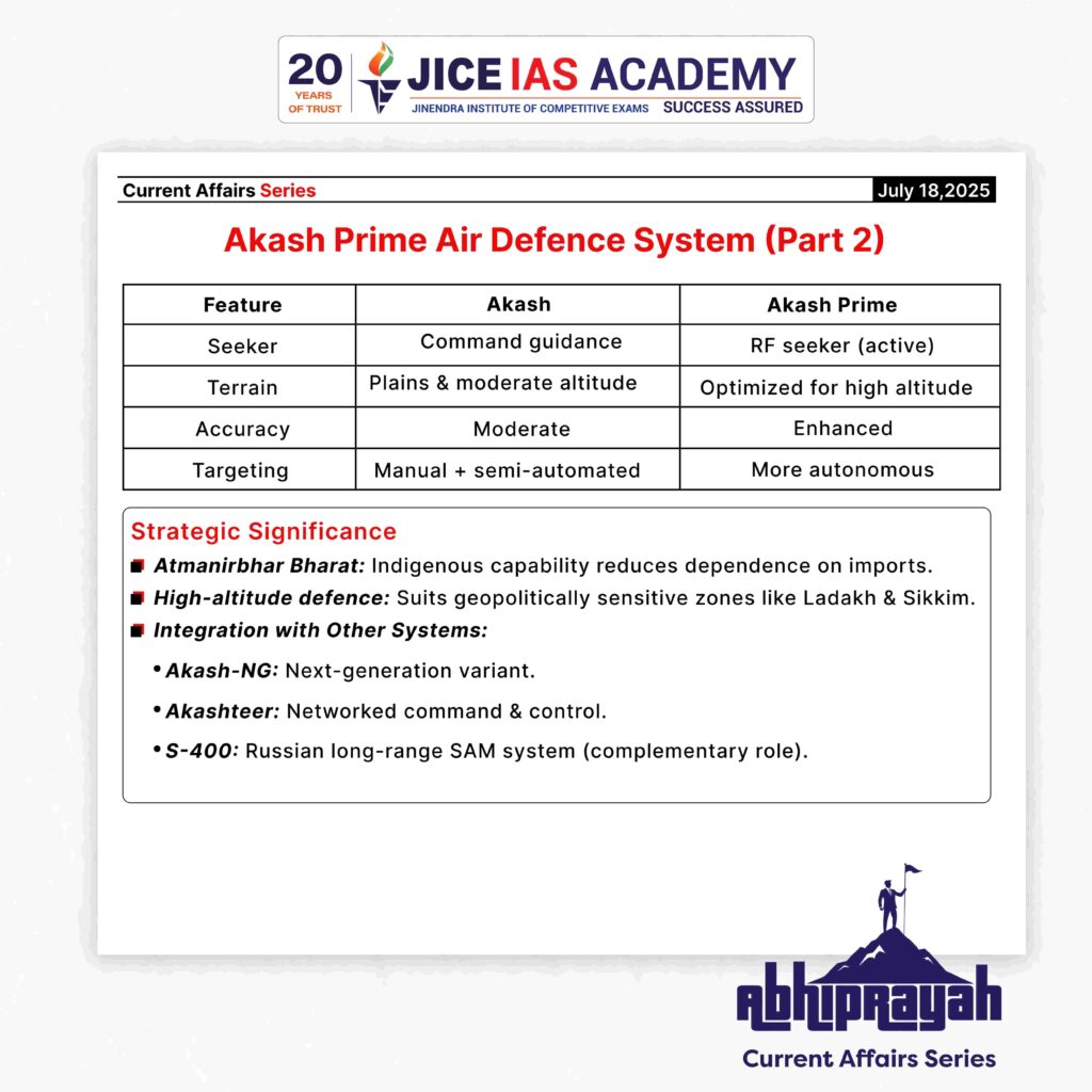 The successful testing of Akash Prime in high-altitude conditions demonstrates India’s growing expertise in indigenous missile development and deployment. With enhanced accuracy, adaptability, and proven performance, Akash Prime will be a critical asset in India’s layered air defence strategy, especially in challenging border terrains.