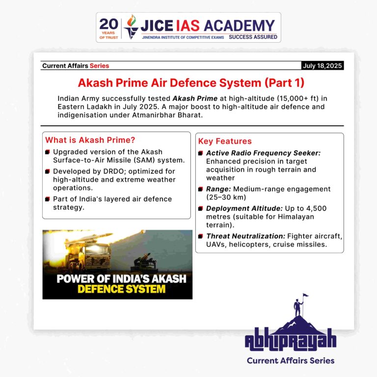 - High-Altitude Defence: Enhances India’s ability to defend its airspace in border regions like Ladakh, where aerial threats may arise amid geopolitical tensions.