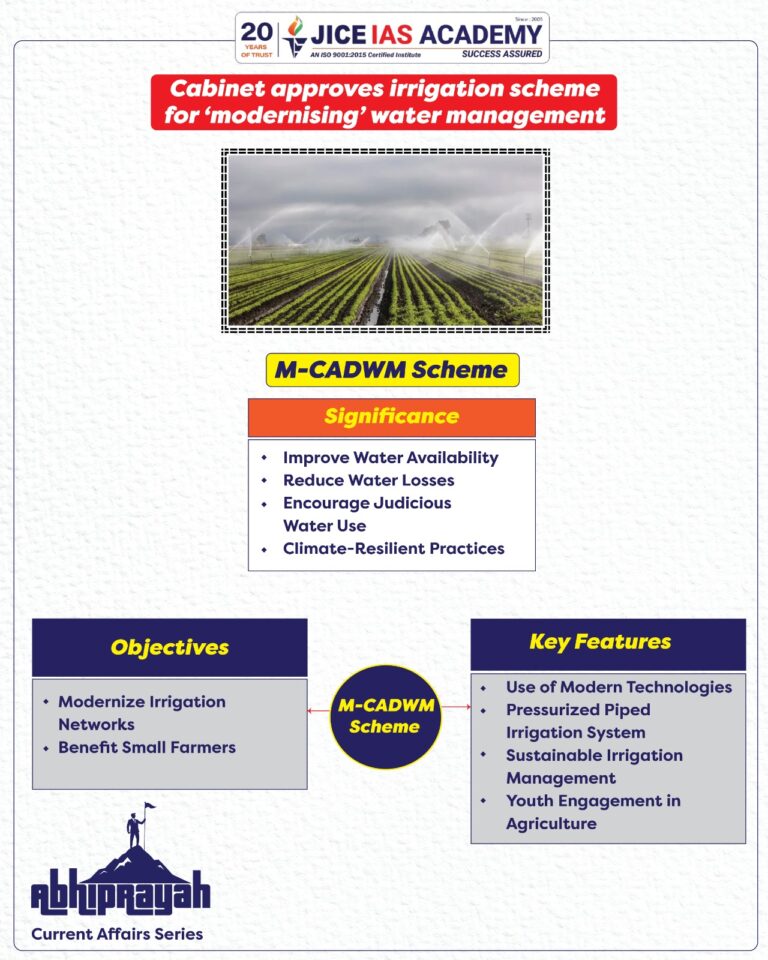 - The M-CADWM sub-scheme represents a crucial step towards modern, sustainable, and inclusive agricultural irrigation in India.