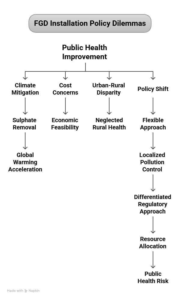 - The evolving stance on FGD installation reflects India’s attempt to balance environmental goals, health priorities, and energy needs.
