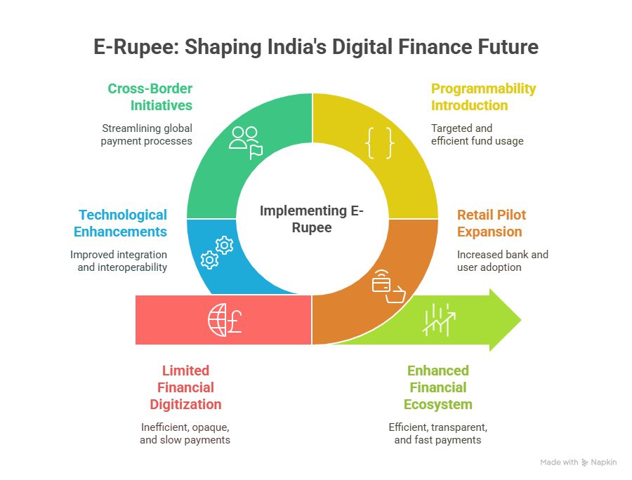 - As the e-Rupee evolves, it promises to enhance efficiency, support welfare delivery, and position India as a leader in the global CBDC ecosystem.