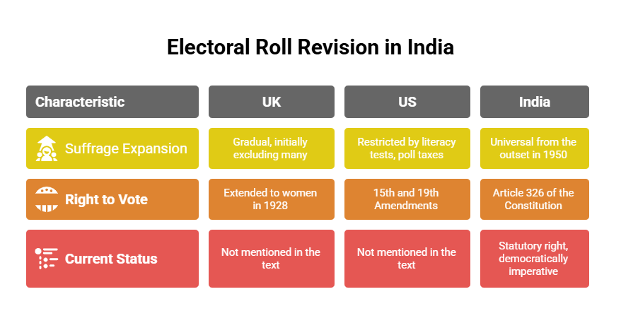 Unlike the gradual, exclusionary franchise expansion in Western democracies, India adopted universal adult suffrage from the outset of its republican journey in 1950.