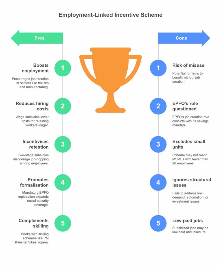 - EPFO’s role as an implementing agency is questioned since its main mandate is to safeguard workers’ savings, not to create jobs.