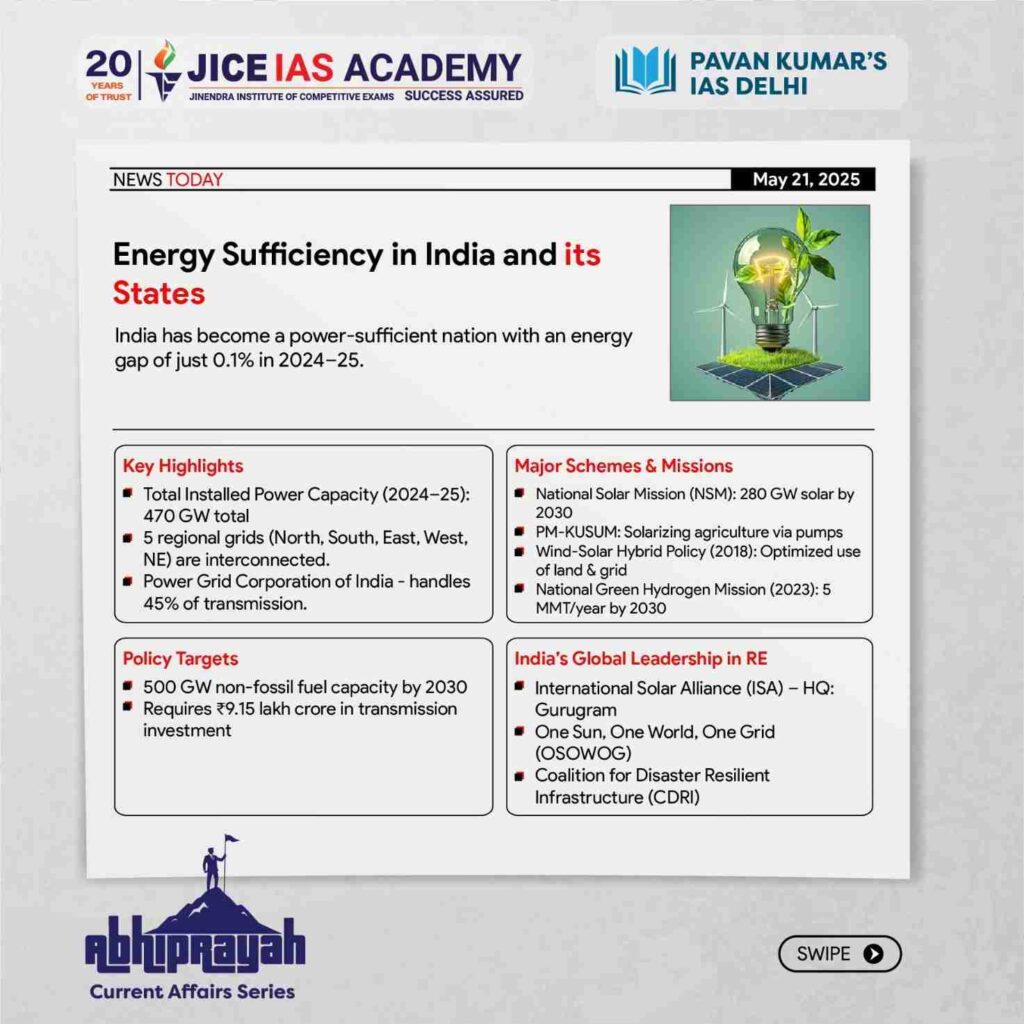 India has officially transformed into a power-sufficient nation, with an energy gap of only 0.1% in 2024–25, while regional disparities persist, especially in East and North-East India.