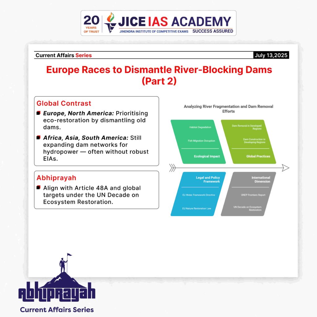 - The dam removal movement is part of a nature-based solutions approach under the UN Decade on Ecosystem Restoration (2021–2030).