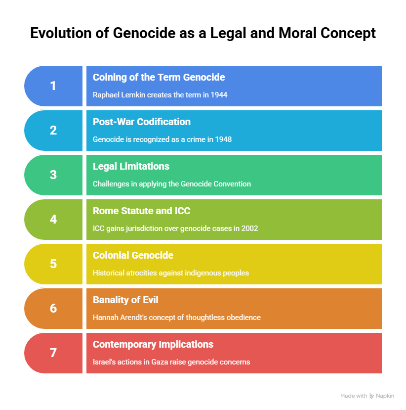 • The evolution of genocide as a legal and moral concept underscores humanity’s struggle to name and act against extreme violence.