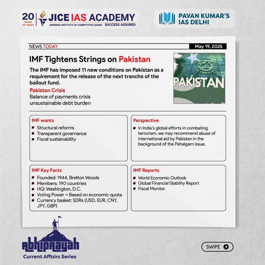 The IMF has imposed 11 new conditions on Pakistan, raising the total to 50, linking further bailout disbursal to fiscal reforms, energy tariff hikes, and governance improvements amidst rising India-Pakistan tensions.