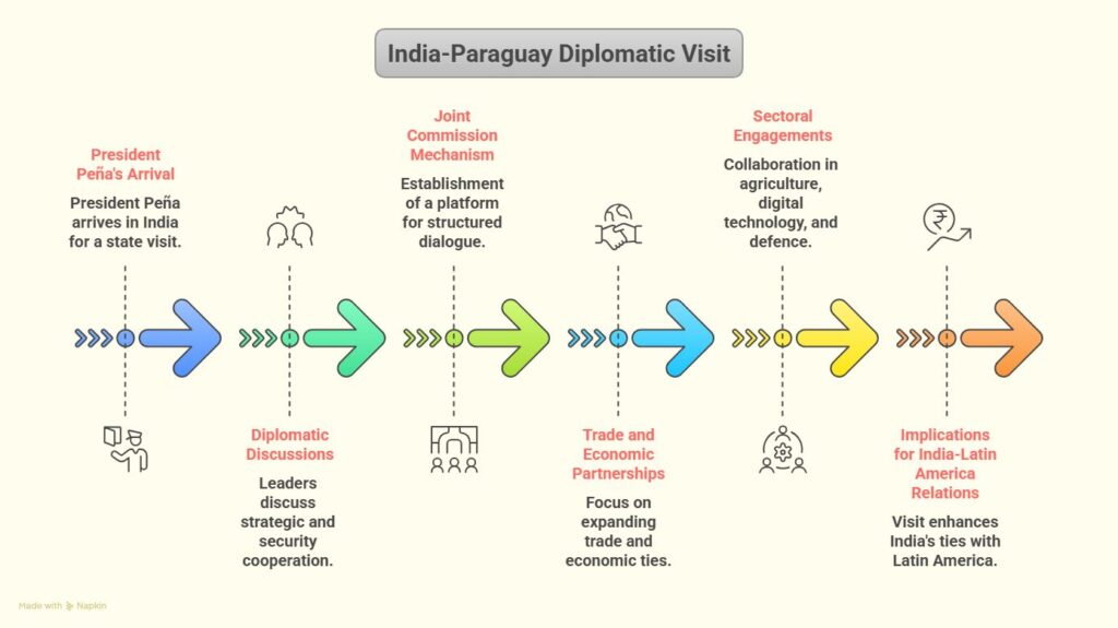 - President Santiago Peña’s visit marks a strategic deepening of India-Paraguay relations, with long-term implications for India’s outreach to Latin America.