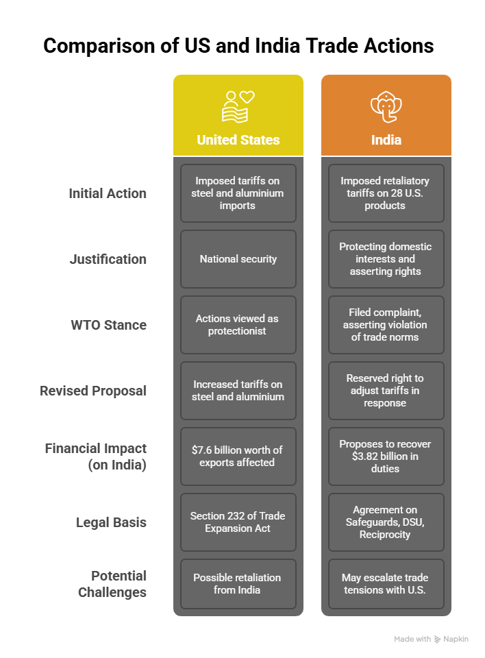 In response, India had imposed retaliatory tariffs in June 2019 on 28 U.S. products, including almonds, walnuts, and apples. India also filed a formal complaint at the WTO, asserting that the U.S. measures violated trade norms under GATT 1994 and the WTO Agreement on Safeguards.