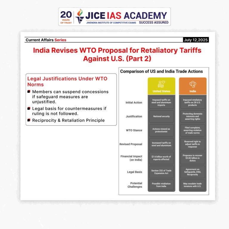 - India’s formal communication to the WTO strengthens its position in ongoing bilateral trade negotiations with the U.S. It sends a message that while India is open to dialogue, it will not hesitate to defend its economic interests if required.