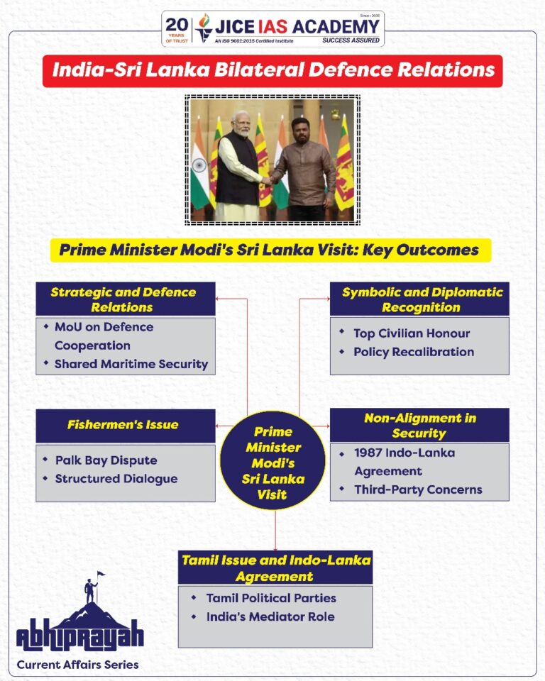 Prime Minister Modi’s visit to Sri Lanka marked a significant step in enhancing bilateral defence ties and reaffirming cooperation on regional security, Tamil reconciliation, and the fisheries dispute.