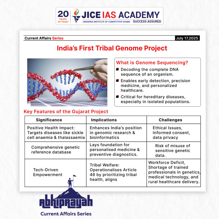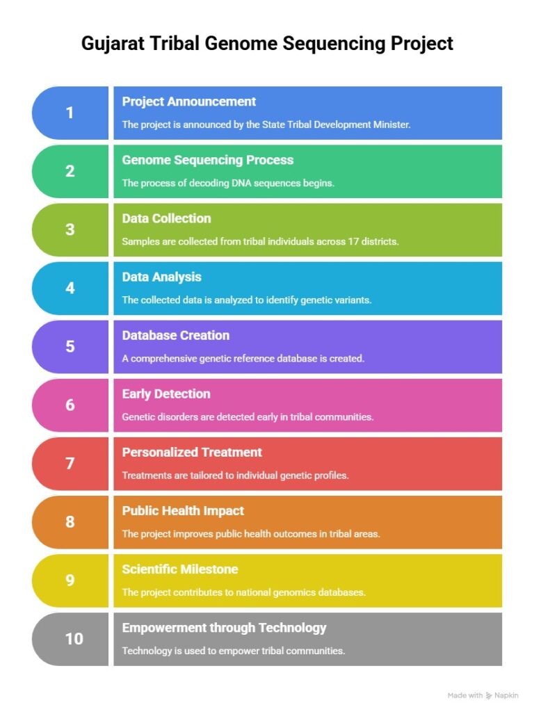 • The project, titled Creation of Reference Genome Database for Tribal Population in Gujarat,” was announced during a high-level consultation chaired by State Tribal Development Minister Kuber Dindor.