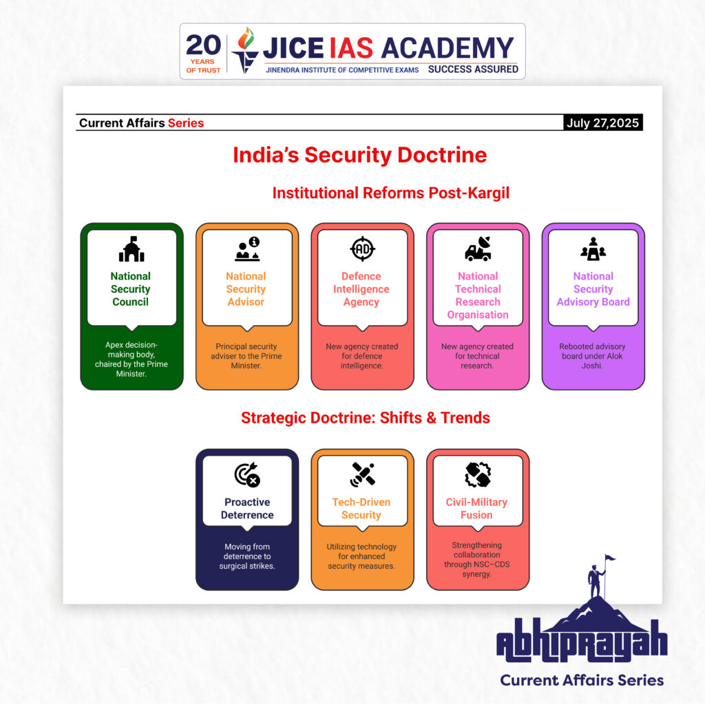 - The current doctrine combines Kargil-era reform with modern counter-terror capabilities, focusing on: