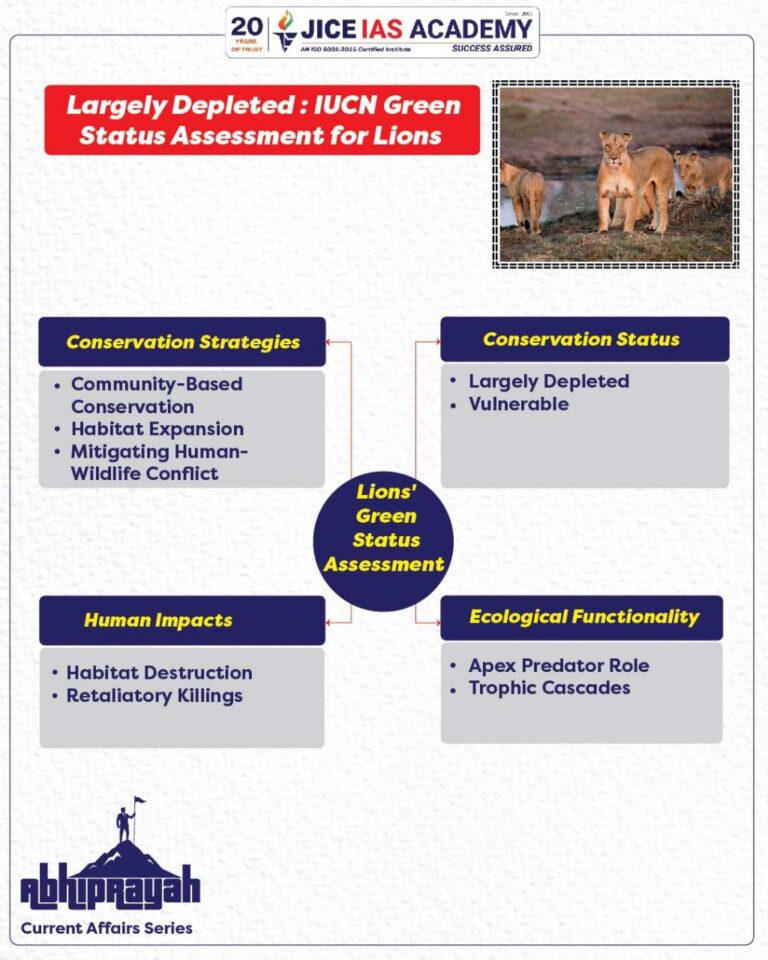 - The lion may not be at immediate risk of extinction, but its functional role as an apex predator—controlling prey populations and maintaining ecological balance—has been compromised.