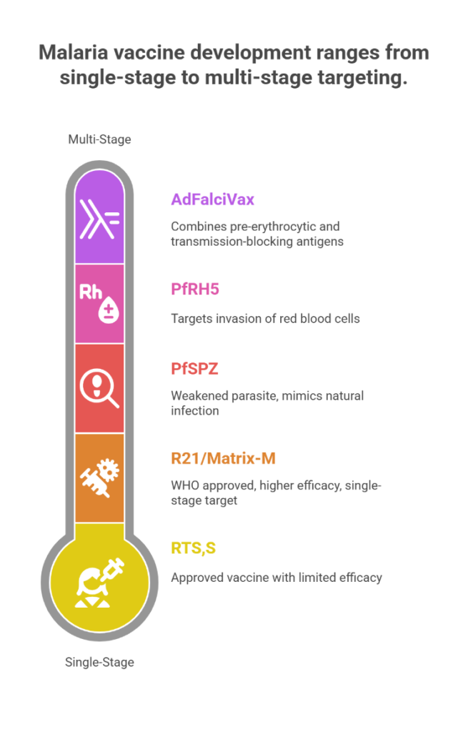 - AdFalciVax (India): Integrates both infection prevention and transmission-blocking.