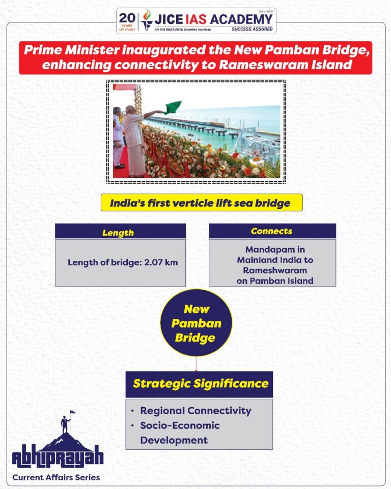 Prime Minister inaugurated the New Pamban Bridge, enhancing connectivity to Rameswaram Island