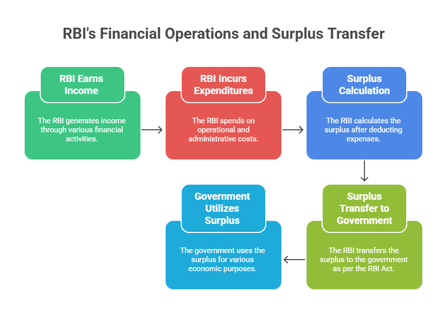 The RBI transfers its annual surplus to the central government based on the Economic Capital Framework, ensuring financial stability while supporting fiscal needs.