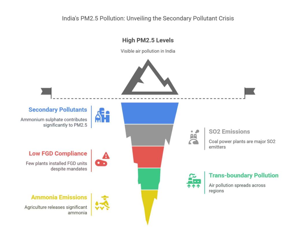 Over 60% of India’s sulphur dioxide (SO₂) emissions — the main precursor of ammonium sulphate — originate from coal-fired thermal power plants. - Regional Spread: