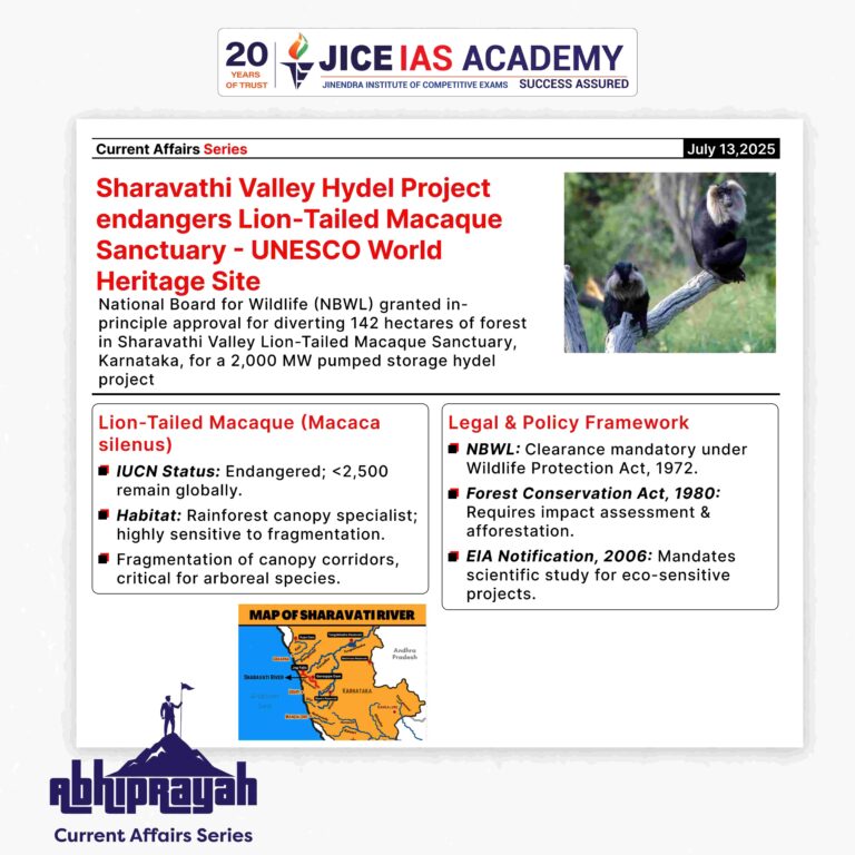 - Local Stakeholders & Conservationists: Stress the risk to the largest contiguous habitat of lion-tailed macaques — a flagship species for Western Ghats conservation.