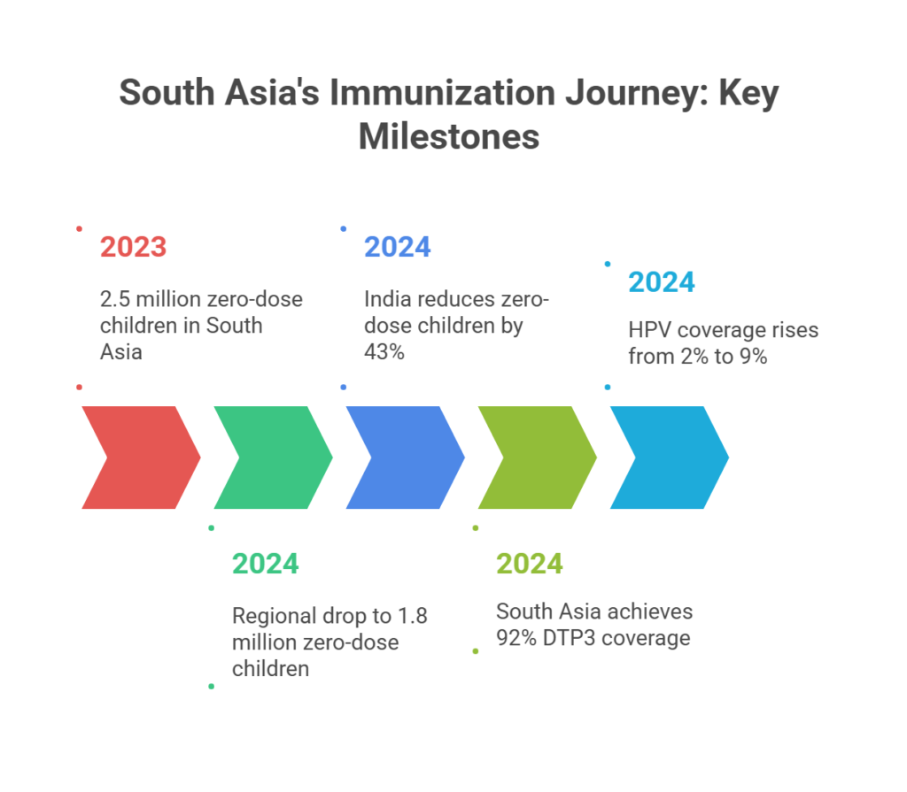 - DTP3 Coverage: South Asia achieved its highest-ever DTP3 (Diphtheria, Tetanus, Pertussis) coverage at 92% in 2024.