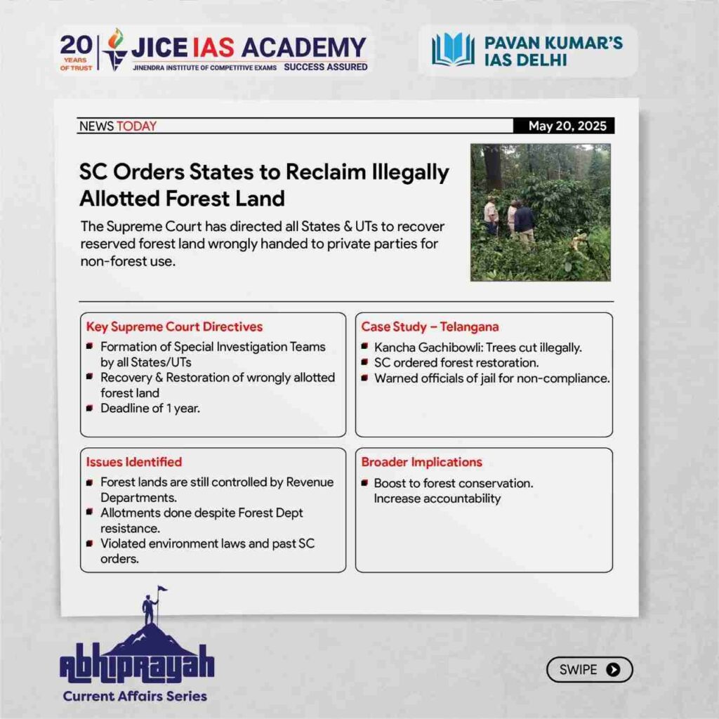 The Supreme Court of India has delivered a landmark judgment concerning the misuse and illegal allotment of forest lands by Revenue Departments across various States and Union Territories (UTs).