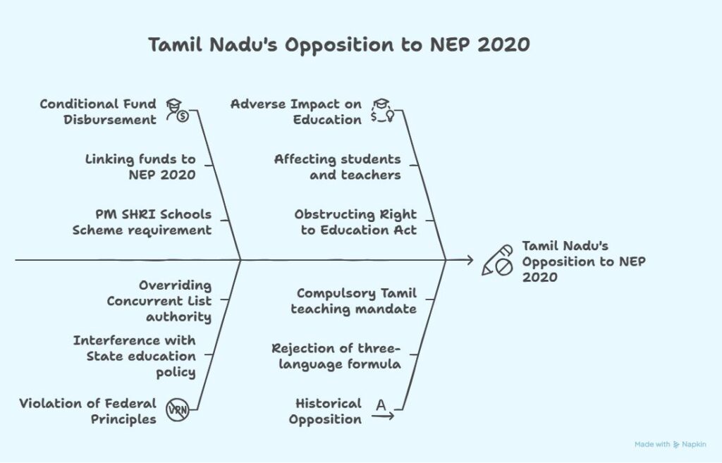 • Concurrent List Authority: Education falls under the Concurrent List, where both the Centre and the States can legislate. However, the State claims its authority is being overridden unconstitutionally.