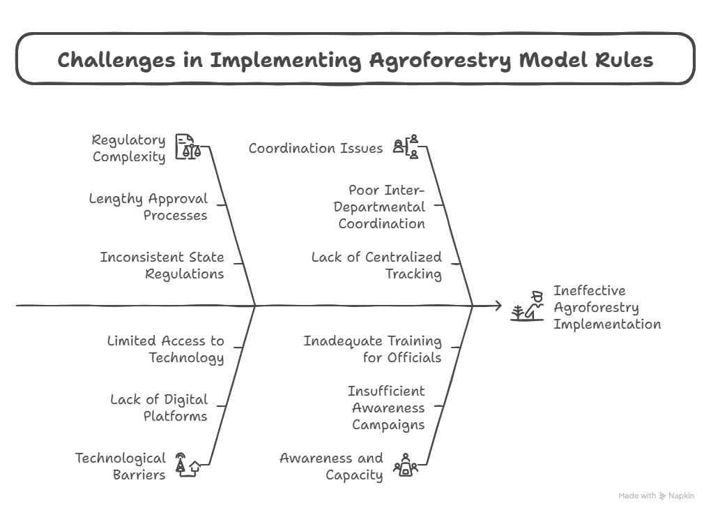 - Despite its benefits, agroforestry has remained underutilized, largely due to complex and inconsistent regulations across different states regarding the felling of trees grown on agricultural lands.