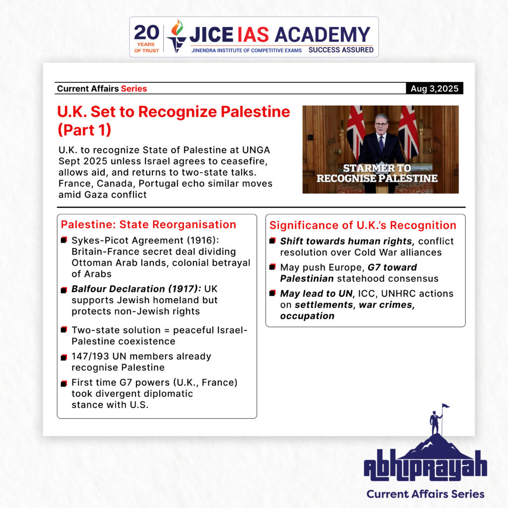 U.K. Set to Recognise Palestine: Historical Significance, Geopolitical Shift, and India’s Strategic Lens