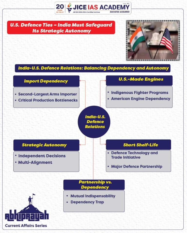 - This could make India’s air superiority dependent on U.S. strategic calculations, limiting India’s operational autonomy if ties sour.