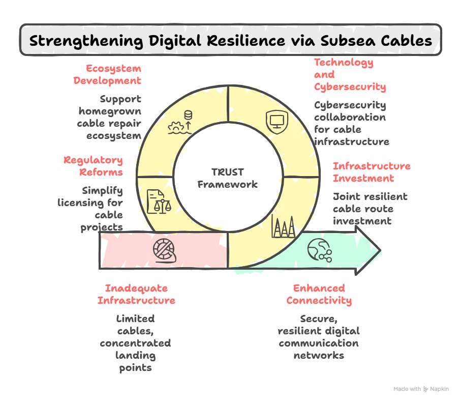 The TRUST framework, evolving out of the U.S.-India iCET, recognizes India’s role as a net security provider in the Indo-Pacific. Subsea cables now fall under the strategic purview of this framework, with implications in both security and commerce.