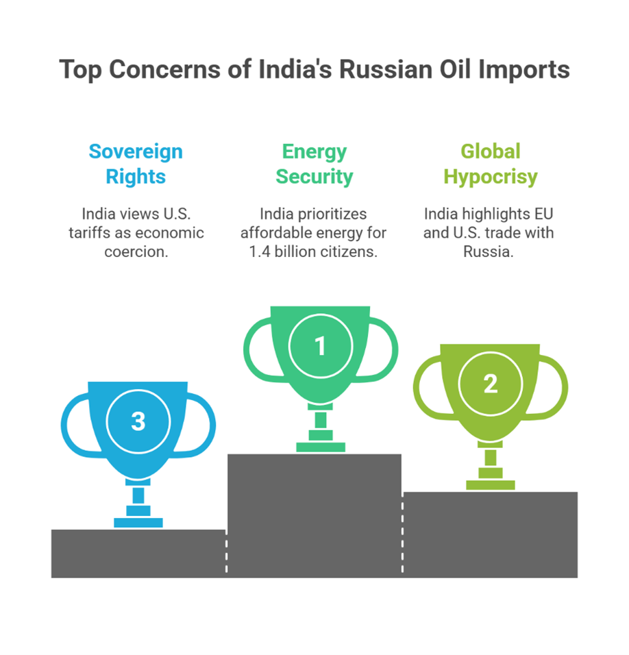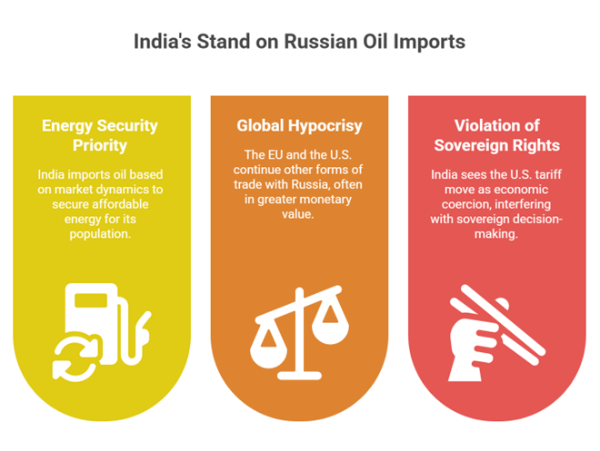 3. Violation of Sovereign Rights: India sees the U.S. tariff move as an attempt at economic coercion, interfering with sovereign decision-making.