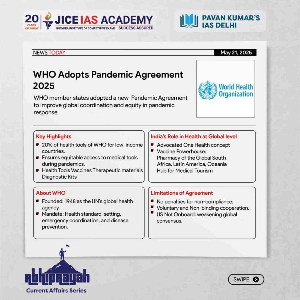 - The new WHO agreement reinforces India’s strategic role as the “pharmacy of the Global South”.