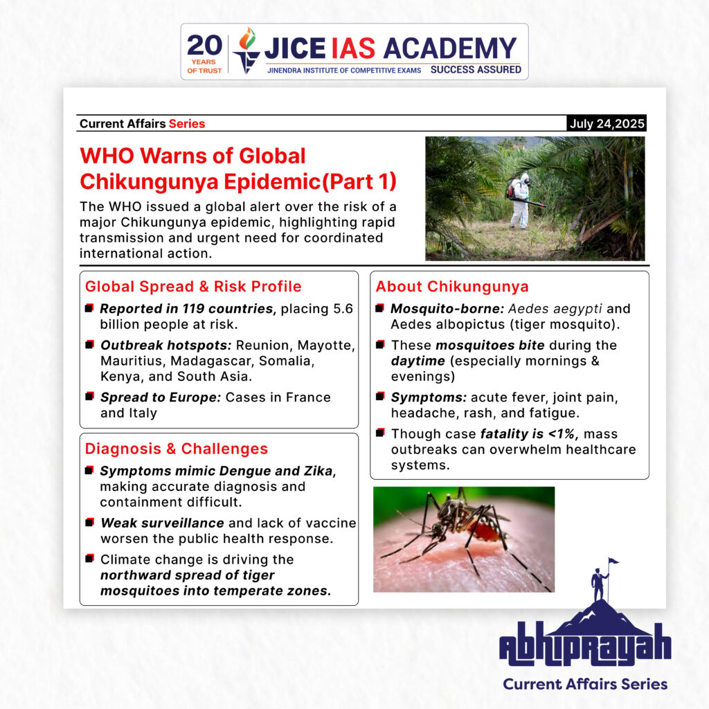 • Recently, the World Health Organization (WHO) warned of a potential global chikungunya epidemic.